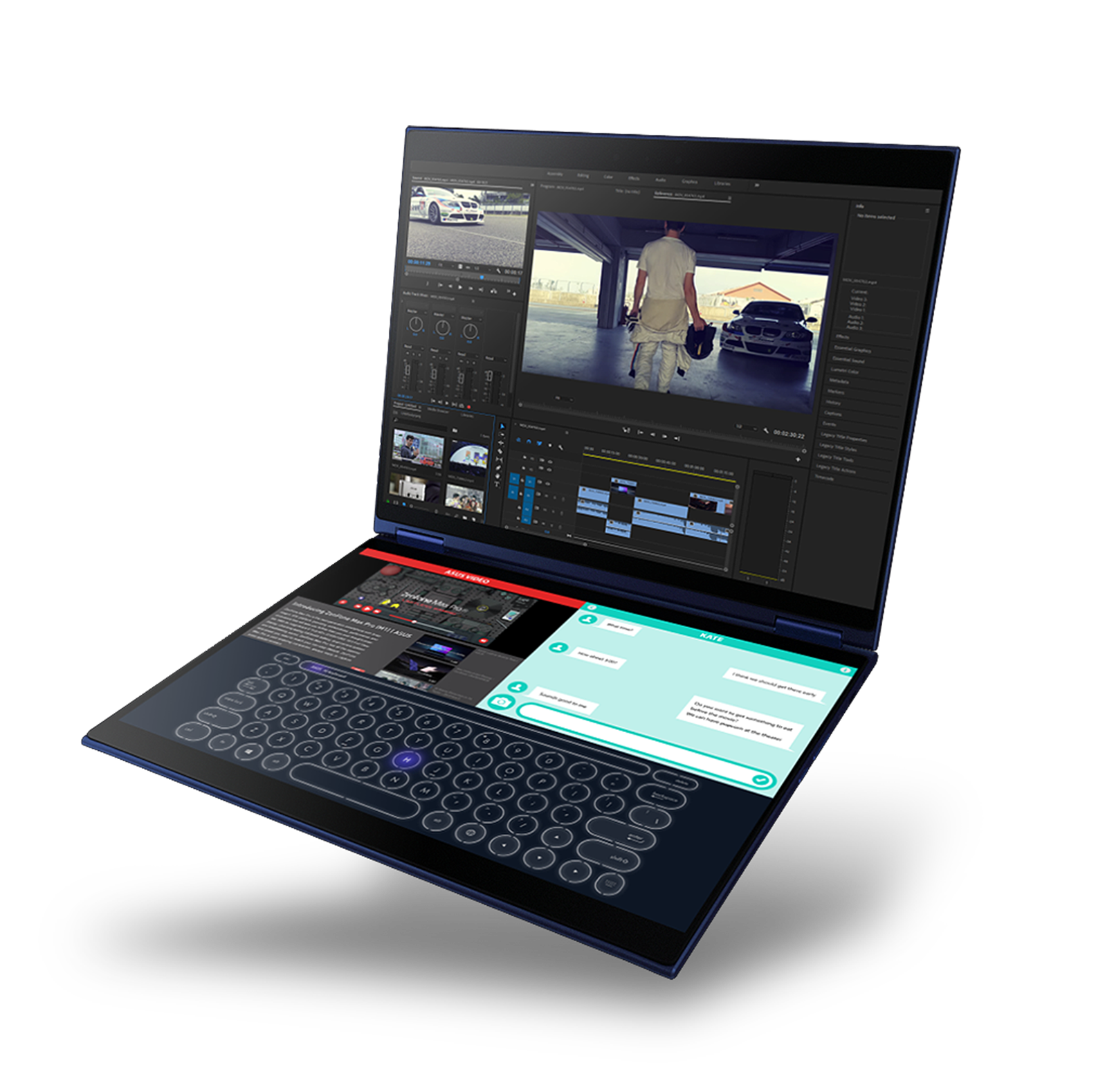 At Computex 2018 Asus showed off a stunning concept laptop, the Asus Precog. The Asus Precog Duo dual-screen laptop was a flexible device that could be used in a number of configurations, such as laptop mode (whats Asus calls Stand mode), but also tent mode, fully flat or even stood up to resemble a dual-monitor PC setup (which Asus calls Book mode).
