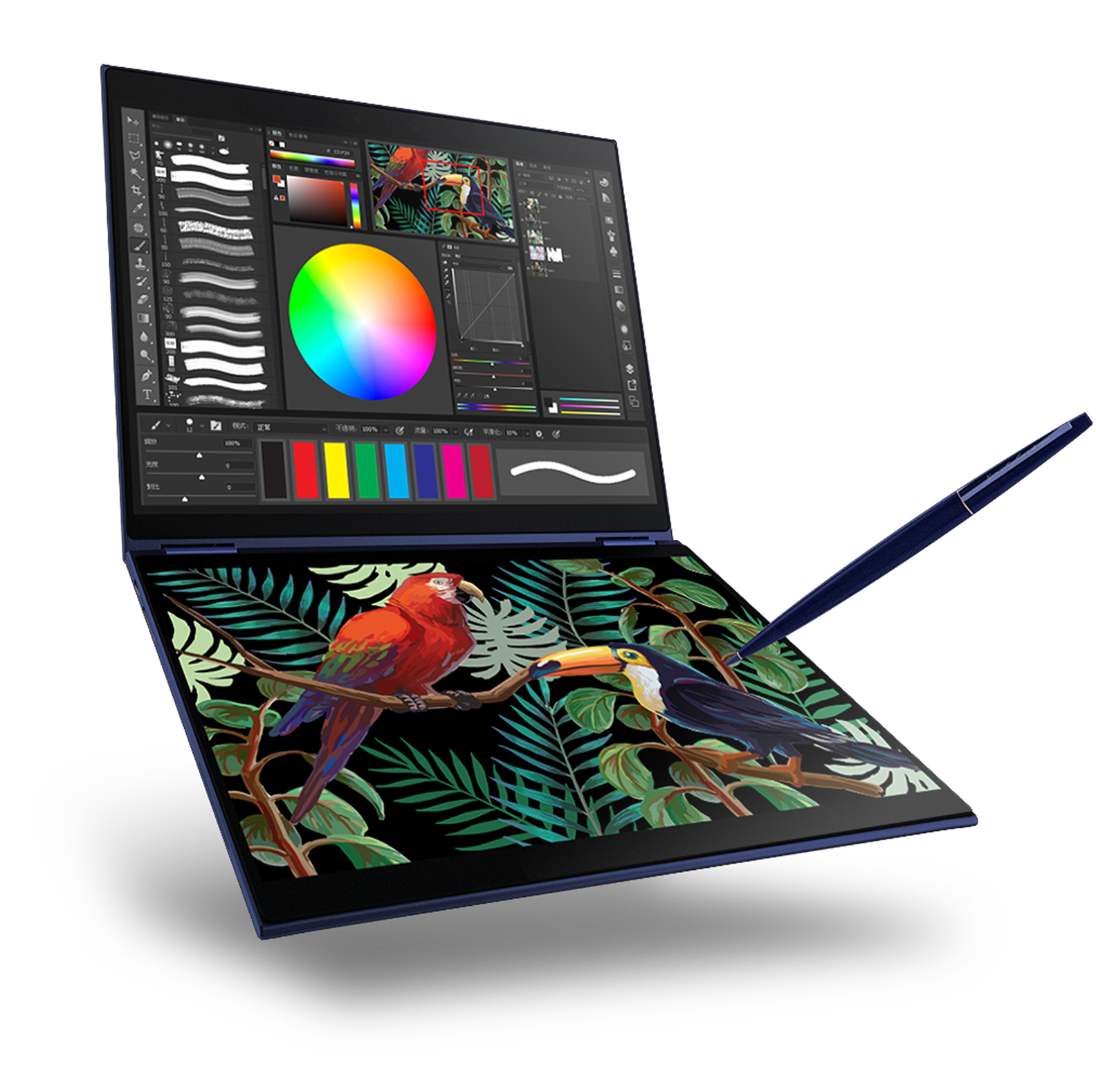 In 2018 Asus said they planned to offer an adaptive input experience, which they call Intelligent Touch, which automatically recognizes the input device you’re using and changes the virtual interface accordingly. The Asus Precog Duo would also automatically adjust the keyboard location depending on where you place your fingertips, or automatically switch to stylus mode when a stylus touches the lower screen. The laptop would have come with support for both Cortana and Alexa, which Asus has enabled to display on a different screen from the one you are using. It also supported Intel® Movidius™ Vision Processing Unit, so the PC will always be able to see you and respond to what you are doing with your hands for example.