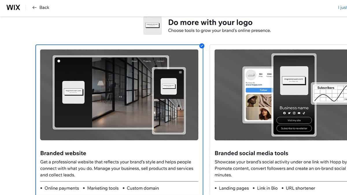 Wix uses a more guided introduction. Before you see any logos, the platform asks: