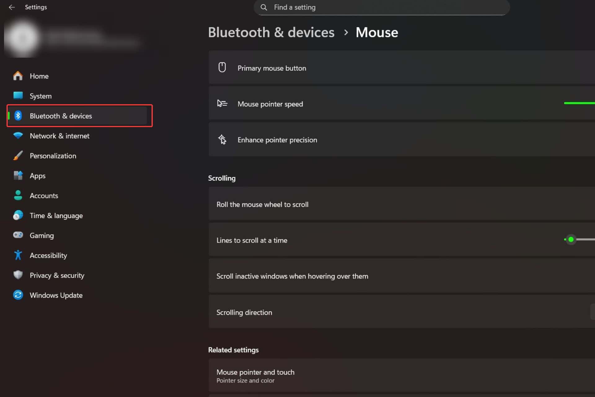 - Pointer speed: Control the speed at which the cursor moves across the screen. Use the slider to adjust to your preference.