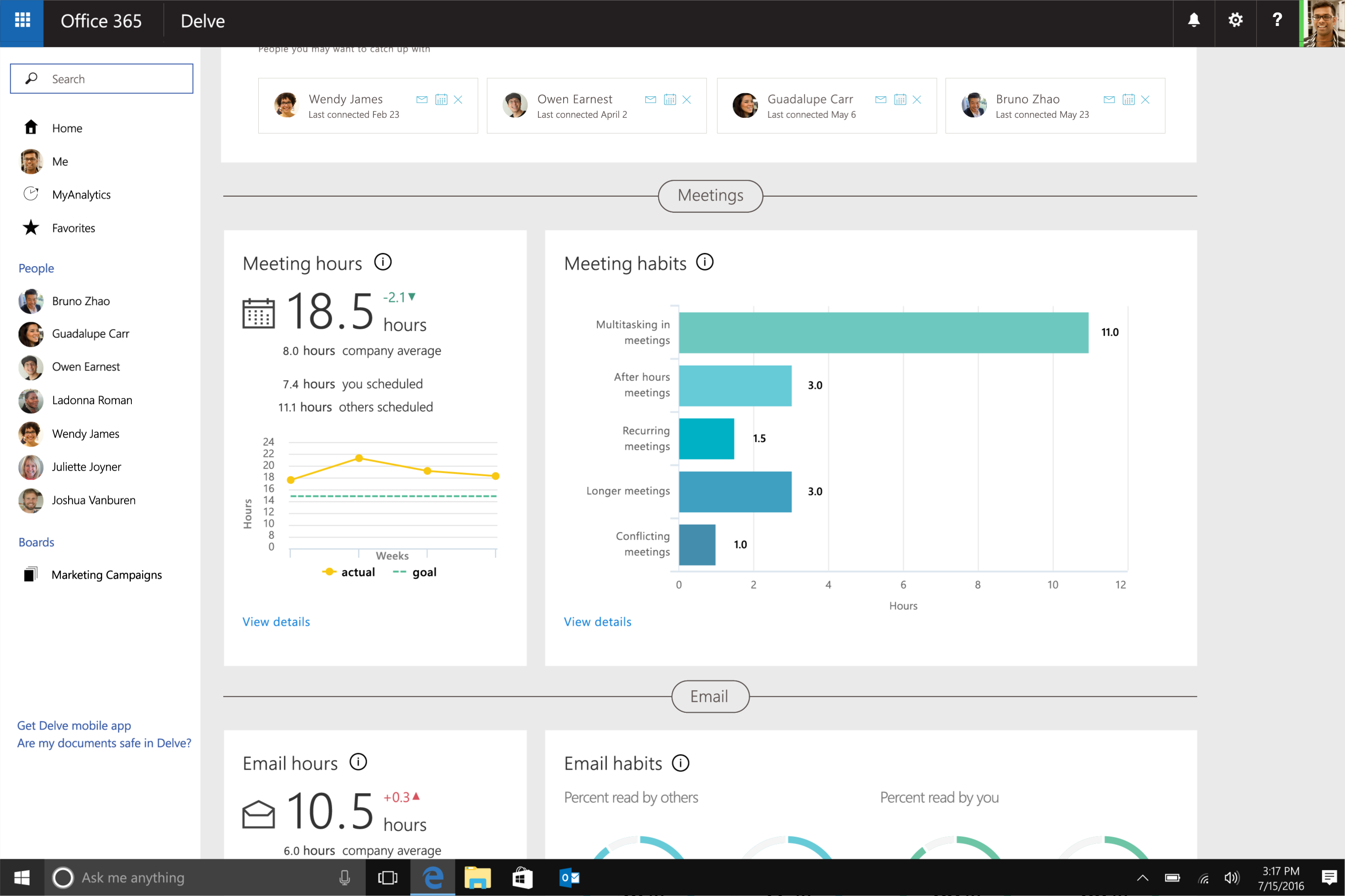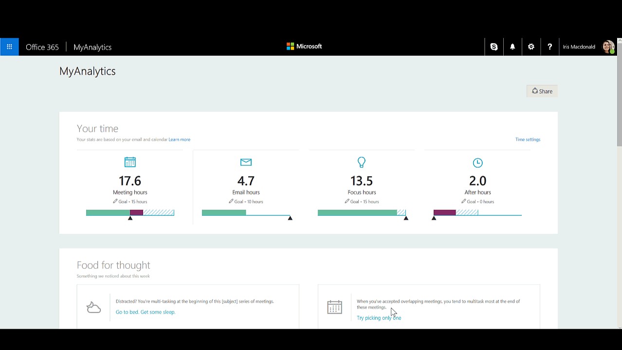Find the screenshots of MyAnalytics below,