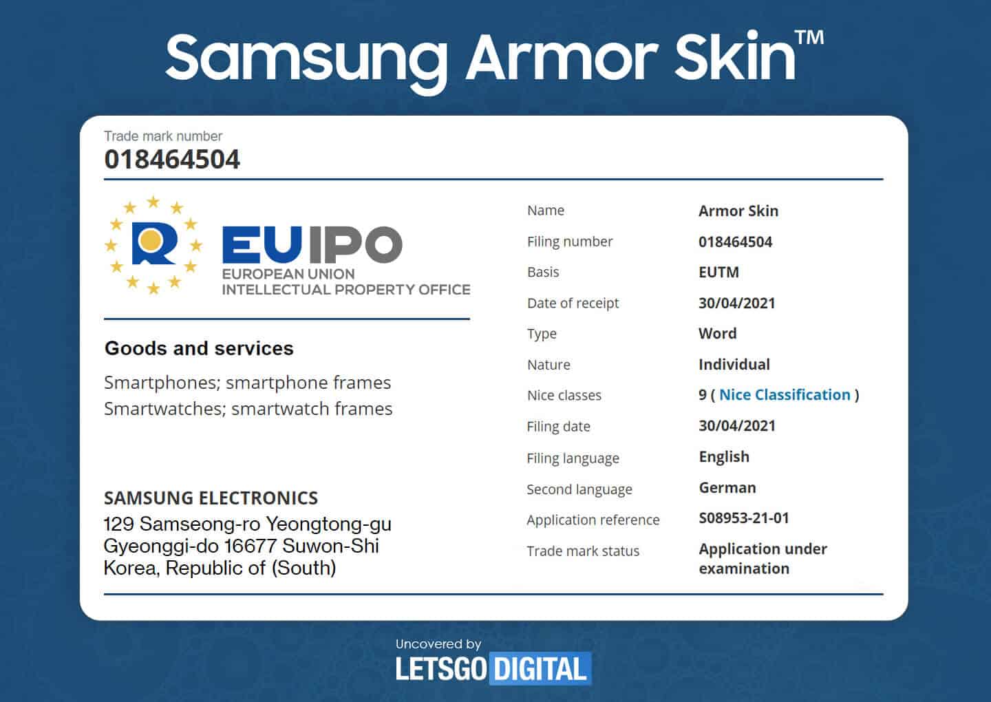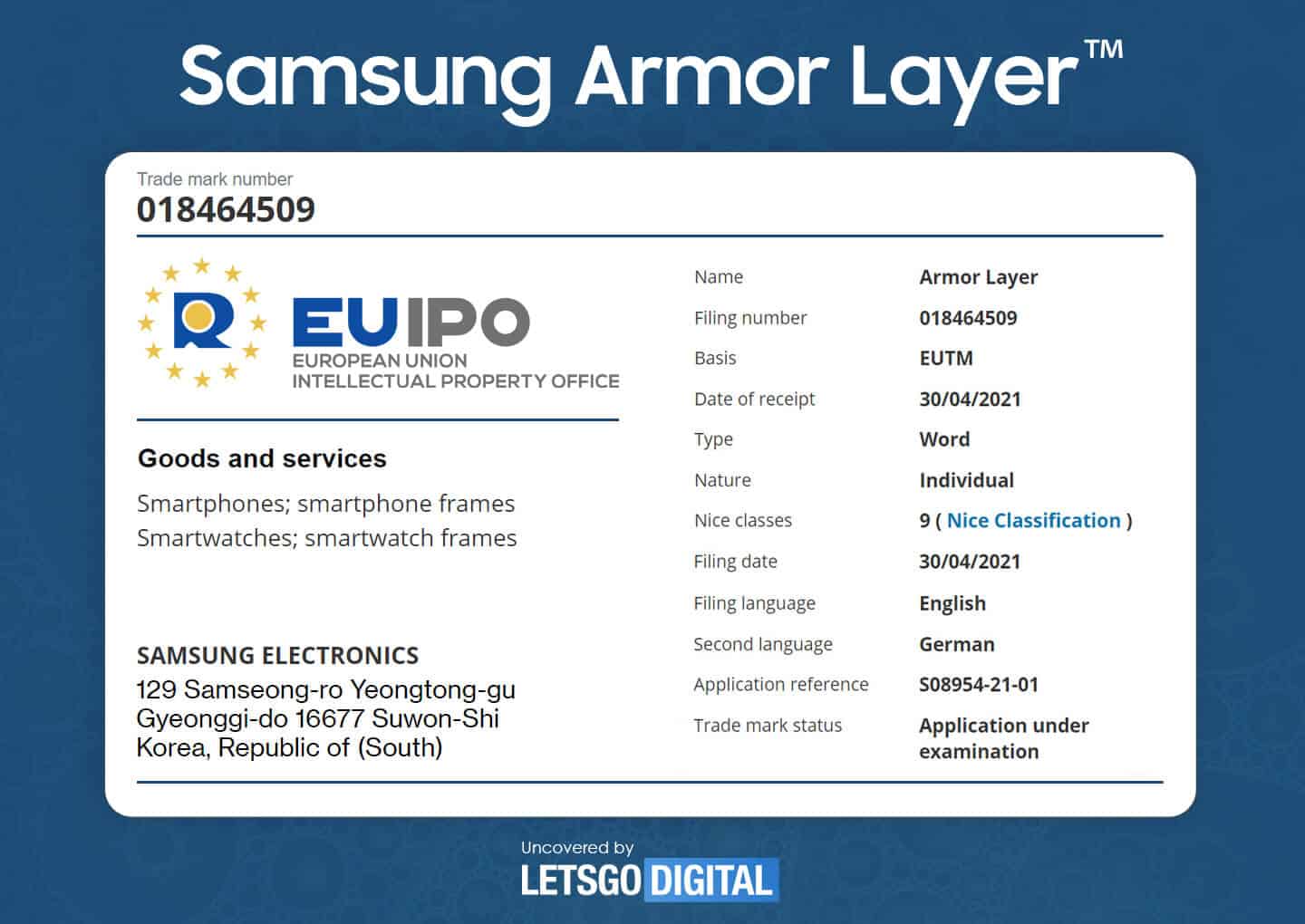 Samsung also applied for a trademark for Armor Skin and Armor Layer, the latter which we assume apply to a protective layer on folding screens which would allow the usage of Samsung’s S-Pen.