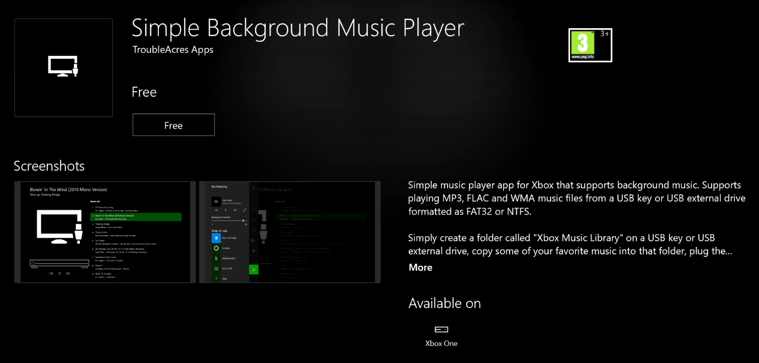 Microsoft recently added a pretty major feature to the Xbox One with the Summer Update, and that is support for Background Music. This feature isn’t enabled by default for all apps that can play music – instead, developers will need to add support for this feature to their apps. For example, Groove Music and Pandora already support Background Music on the Xbox One. Now, there’s a new app for the Xbox One which allows users to play music from USB in theย background. The app, which is called “Simple Background Music Player” is available for free on the Xbox One, and it allows users to play MP3, WMA, and even FLAC music files from a USB key. Additionally, if you have a USB external drive formatted as NTFS or FAT32, you will also be able to play music from there in the background using this app.